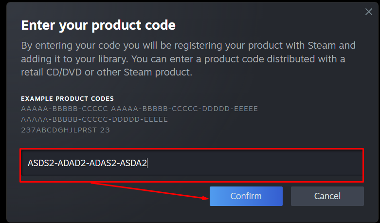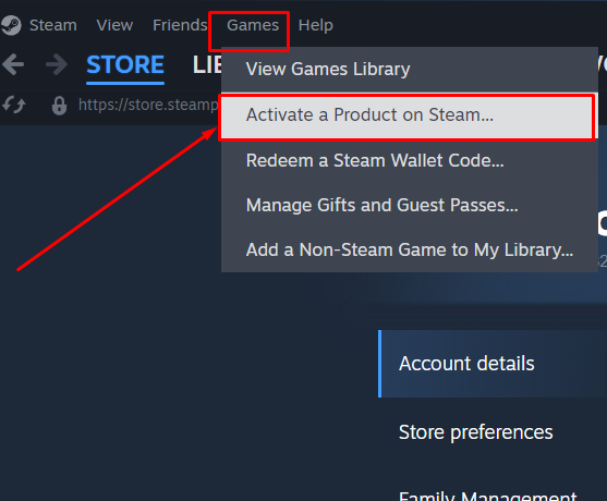 ## Активация ключа в Steam